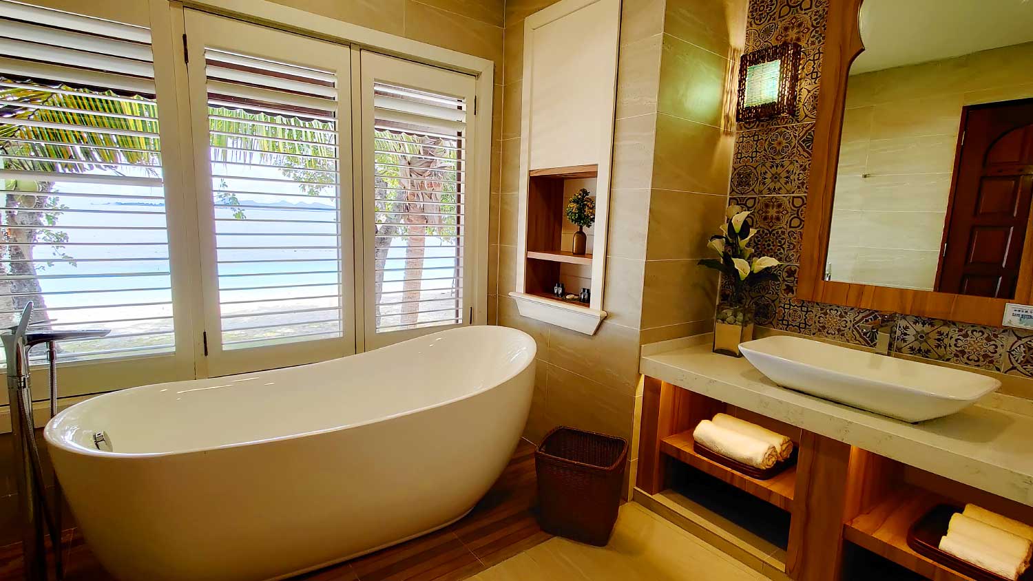 Each of the unit's bathroom comes with private bathtub with direct view of the gorgeous turquoise Ocean and also a large walk-in shower.
