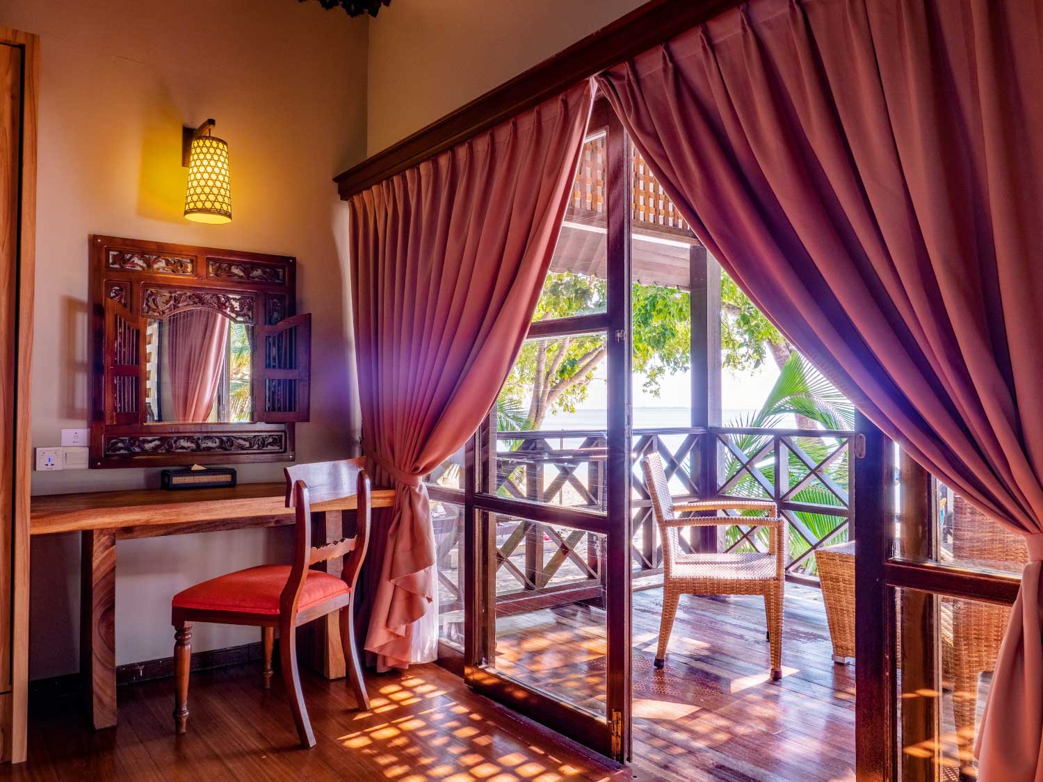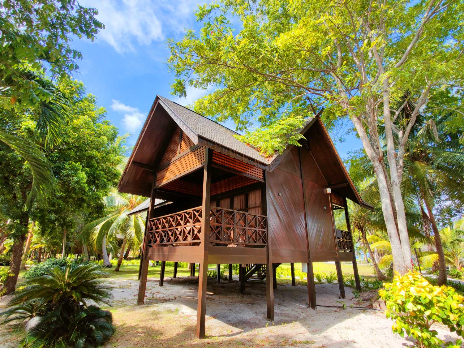 Nestled within the island’s verdant garden, Premium Room offers an upscale privacy surrounded by utmost serenity. Boasting individual rooms linked together in classic longhouse fashion, it is a magnificent choice for large groups; friends, families, or both alike. The room interior design features a superb combination of refreshing white and olive tones, with large windows for ample natural lighting. The bedroom features a direct access to the front porch where you can sit and unwind on a lazy day; sipping coffee, tea, or savor some of delightful light bites.