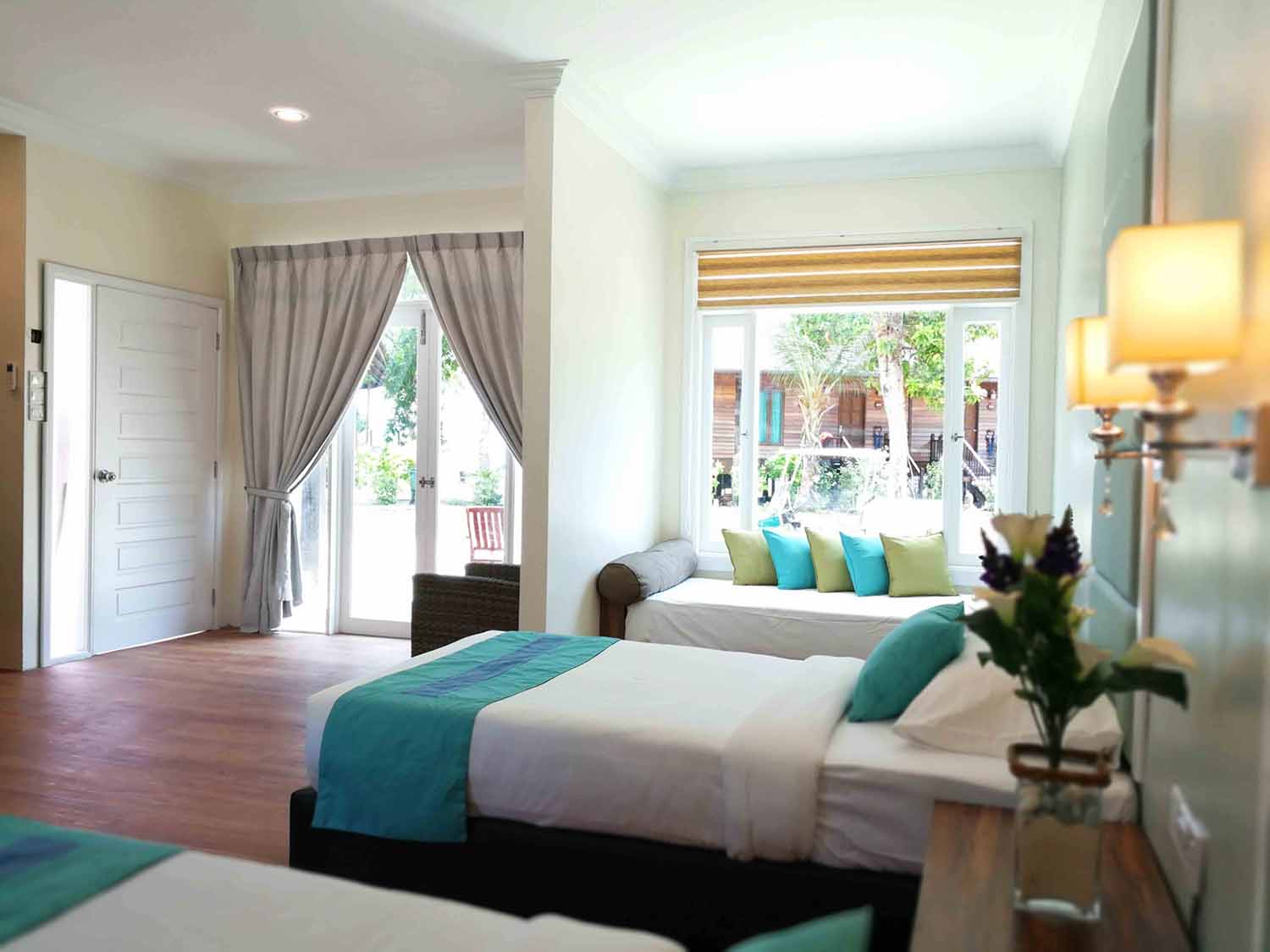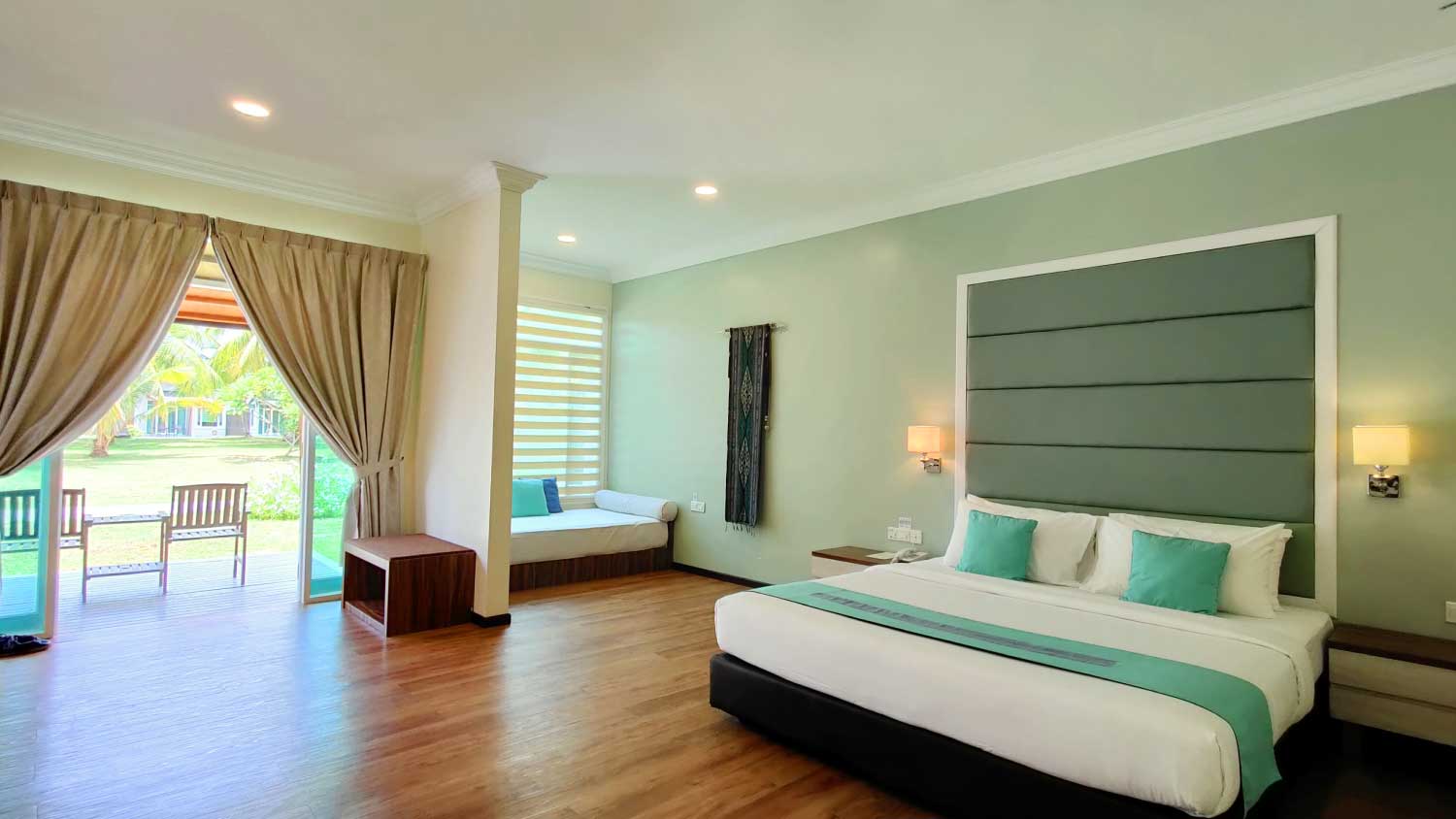 Designed with traditional Malaysian charm in mind, the Garden Deluxe View West is a perfect room for your family getaway. The spacious room can accommodate up to three adults and one child, with twin or king size double-bed configuration available. The room also features a magnificent private shower bathroom and also a private sun deck overlooking a lush garden. The individual sundeck is the perfect spot to laze away the hours with a good book and cool drink, or simply daydream while enjoying the scenic island and garden views.