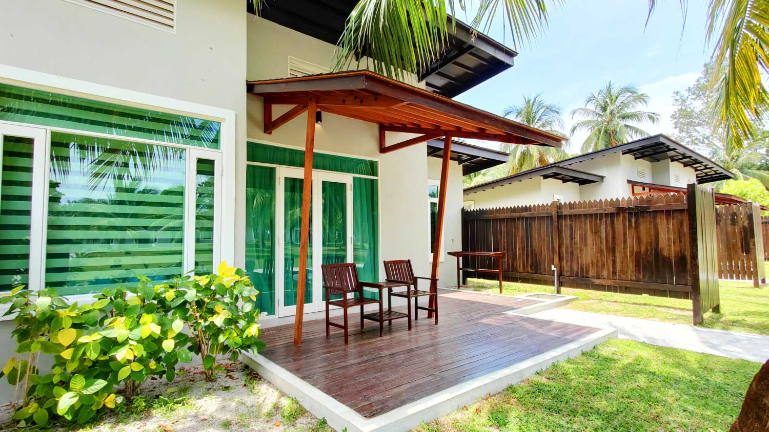 Ample, cozy space of King Chalet room provides a Bungalow-style design for family and honeymooners alike to rest on their glorious tropical escape. Built with the rare ‘Bilian’ wood originated from lush Borneo jungle, King Chalet naturally has a bedroom which is simply oversized and luxurious. The large king bed overlooking the private balcony with satellite television and mini bar will allow you to relax to the max! Each of the unit's bathroom comes with private bathtub with direct view of the gorgeous turquoise Ocean and also a large walk-in shower.