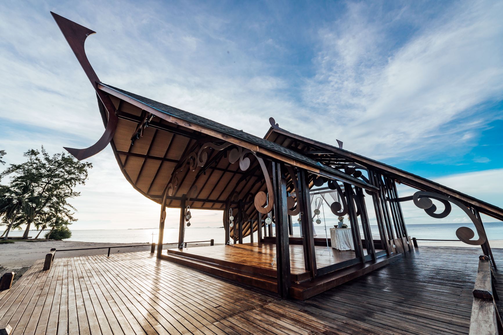 There's nothing more precious than saying 'I do' to your significant other on our outdoor wedding chapel, exclusive for Mataking Reef Resort in-house guests; elegant dark-brown deck by the sea and gorgeous wooden chapel; with intricately carved asphalt shingle roof as an eye-catching decoration, vast Ocean as a magnificent backdrop surrounded by pristine tropical island vibe.