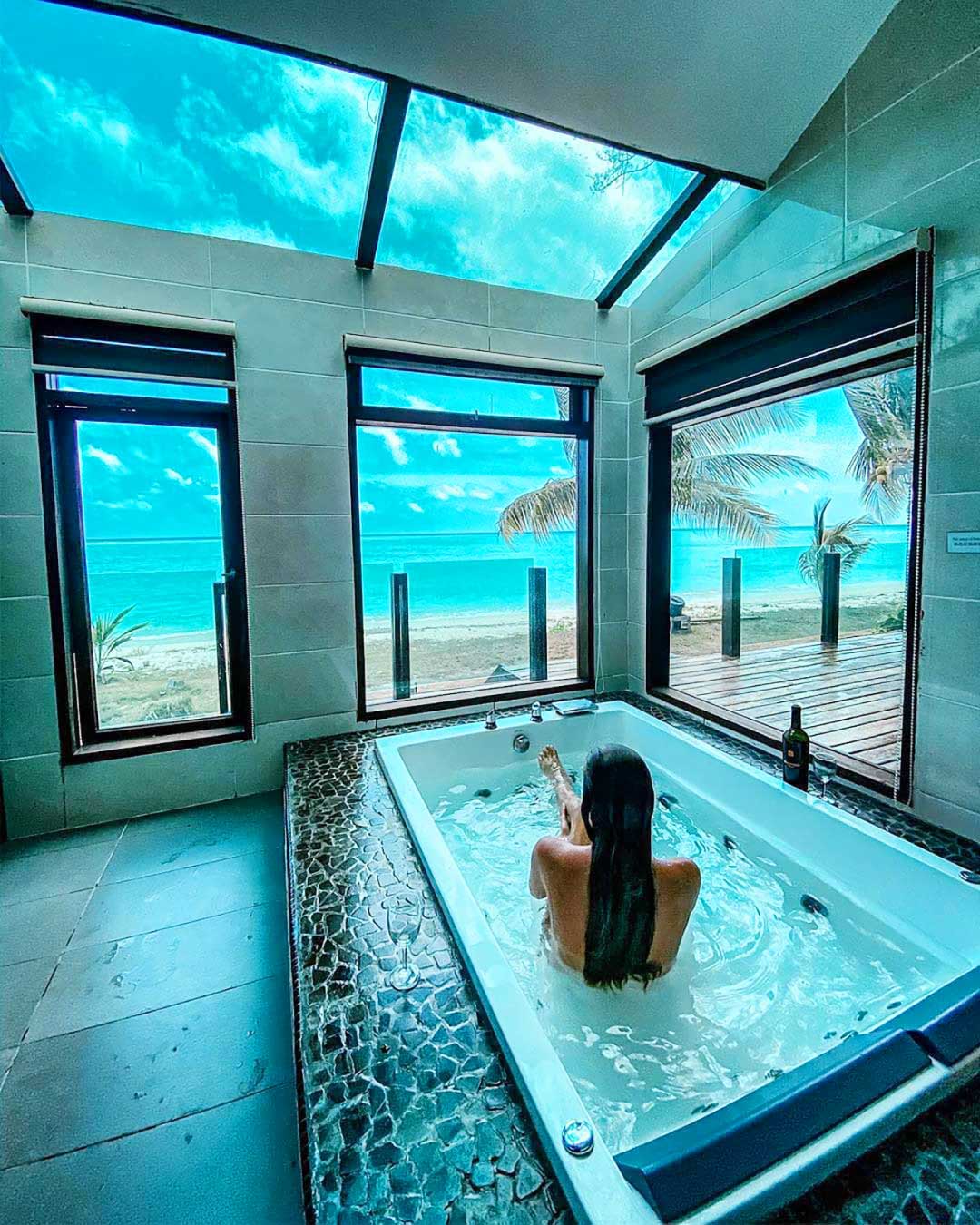 It offers an uninterrupted sea view patio, lounging daybed, double sink bathroom, rainfall shower and private Jacuzzi soak tub under the natural skylight.
