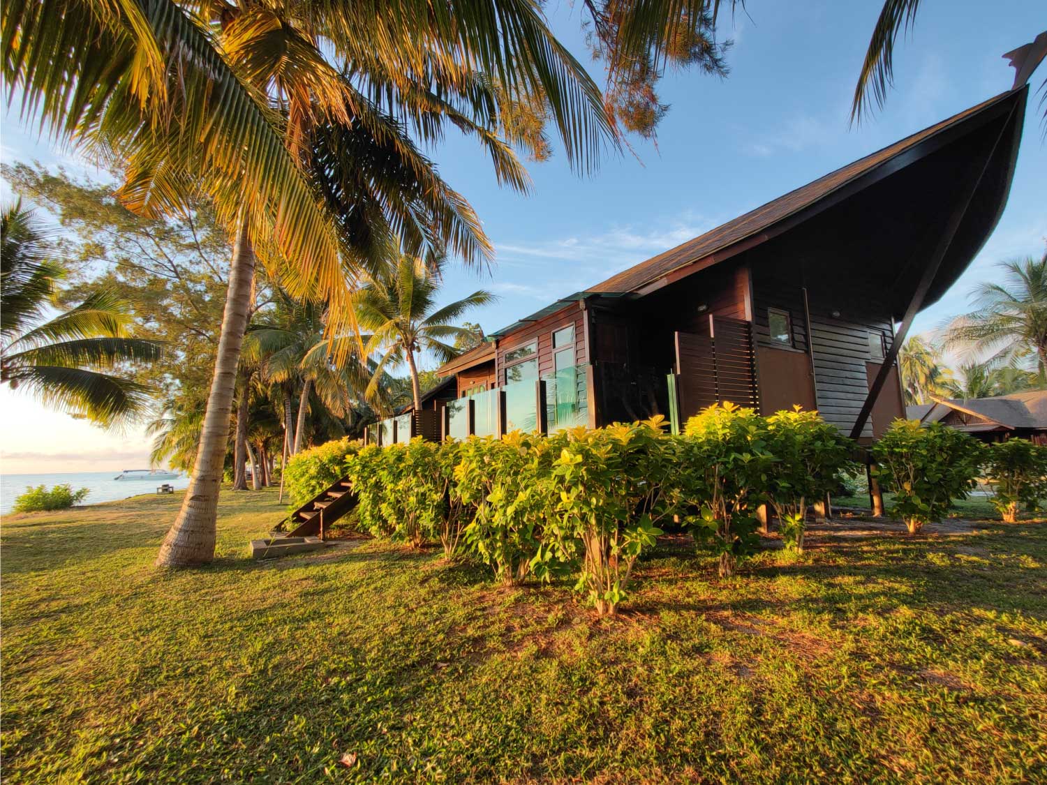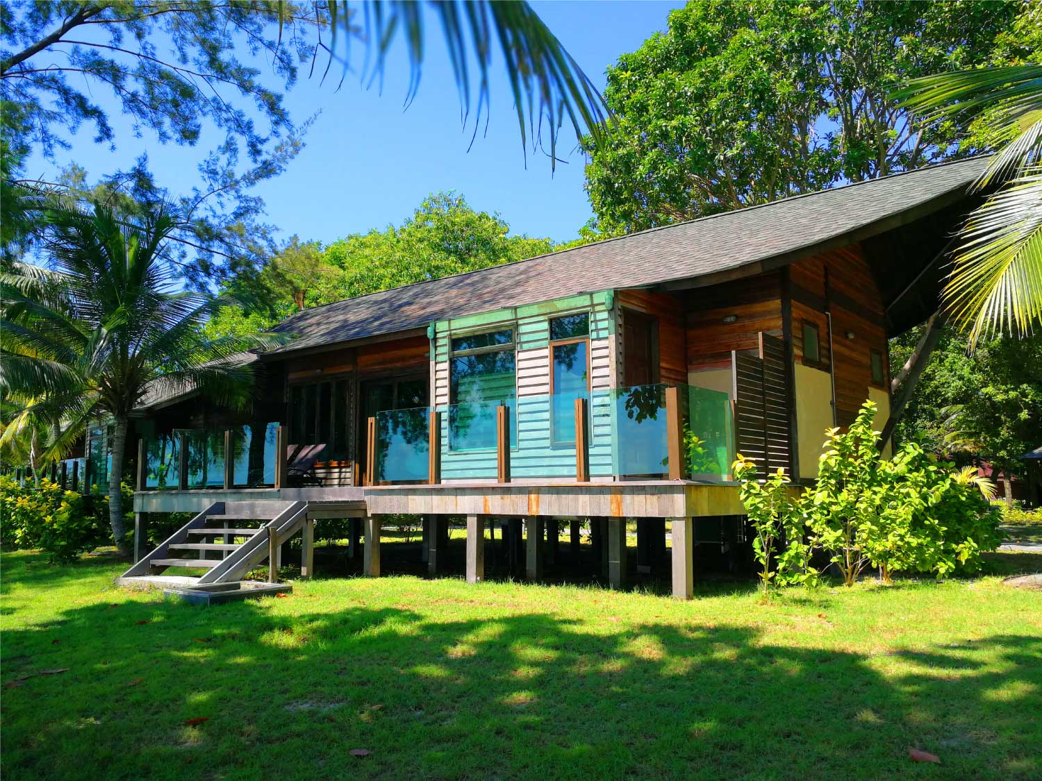 Nestled within the island’s verdant garden, Premium Room offers an upscale privacy surrounded by utmost serenity. Boasting individual rooms linked together in classic longhouse fashion, it is a magnificent choice for large groups; friends, families, or both alike. The room interior design features a superb combination of refreshing white and olive tones, with large windows for ample natural lighting. The bedroom features a direct access to the front porch where you can sit and unwind on a lazy day; sipping coffee, tea, or savor some of delightful light bites.