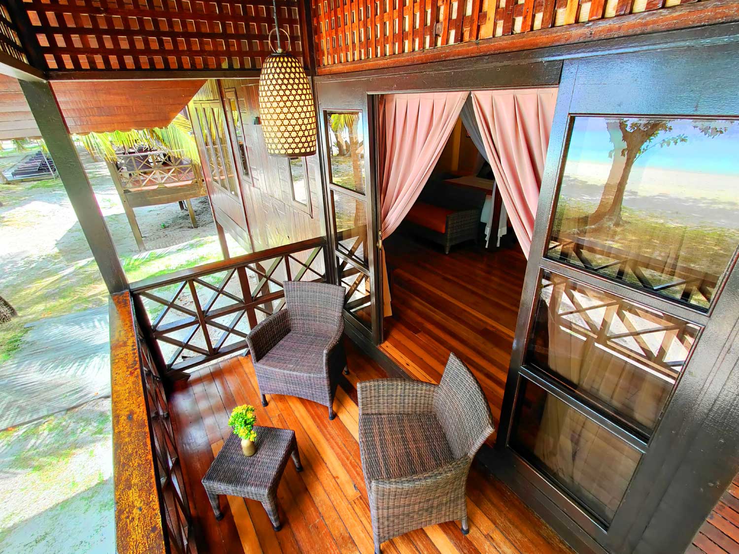 Nestled within the island’s verdant garden, Premium Room offers an upscale privacy surrounded by utmost serenity. Boasting individual rooms linked together in classic longhouse fashion, it is a magnificent choice for large groups; friends, families, or both alike. The room interior design features a superb combination of refreshing white and olive tones, with large windows for ample natural lighting. The bedroom features a direct access to the front porch where you can sit and unwind on a lazy day; sipping coffee, tea, or savor some of delightful light bites.