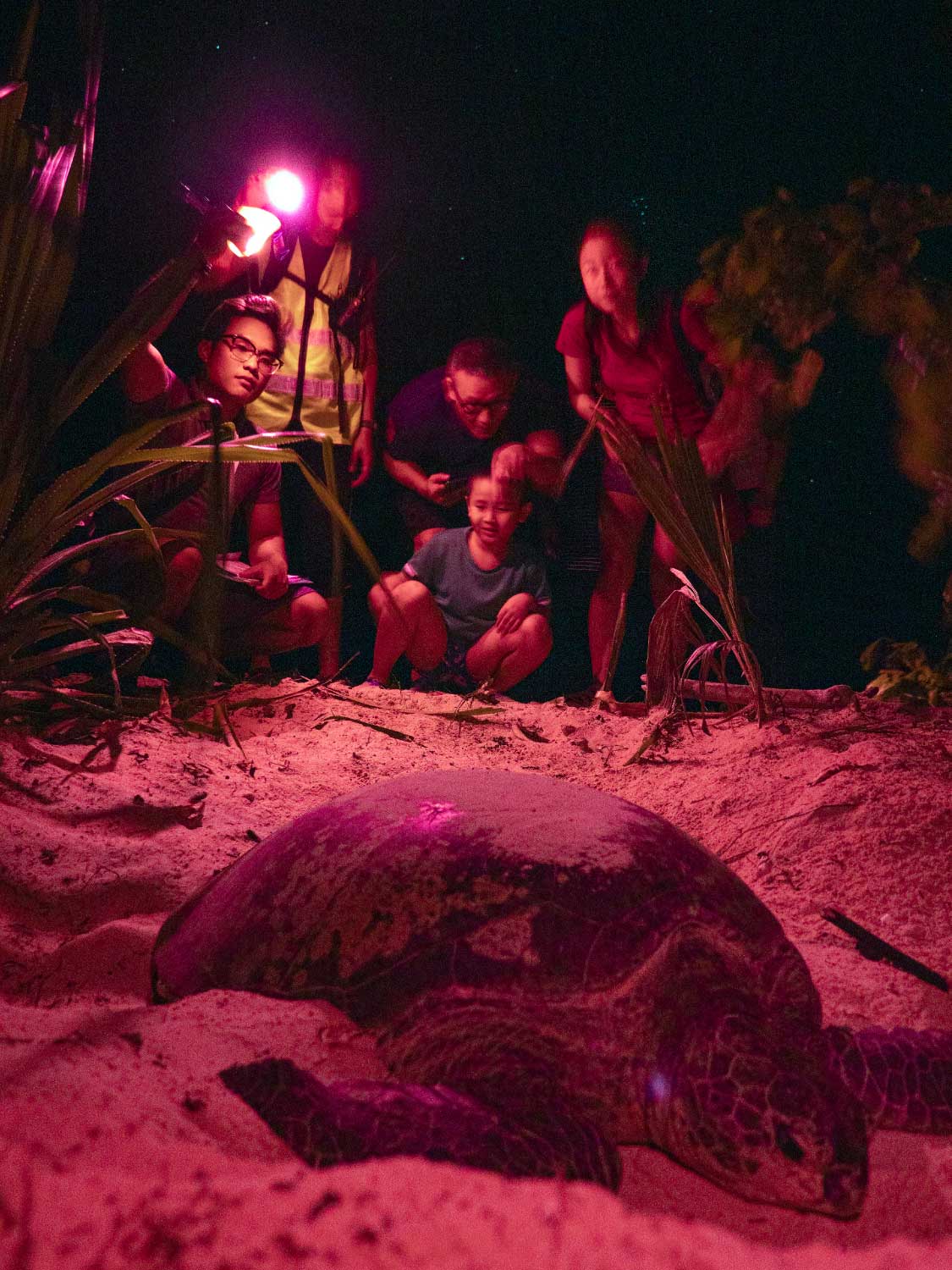 马达京岛上有一支海龟巡逻队,成员有度假村不同部门认证的志愿者,致力于保护栖息在马达京岛的海龟。巡逻队每晚都会带领限定数量的游客,跟随岛上的海洋生物学家,寻找在岛上筑巢的海龟。游客可以亲眼目睹收集筑巢数据的过程,还有将发现的海龟巢穴迁移到海龟孵化场内,加以保护的过程。