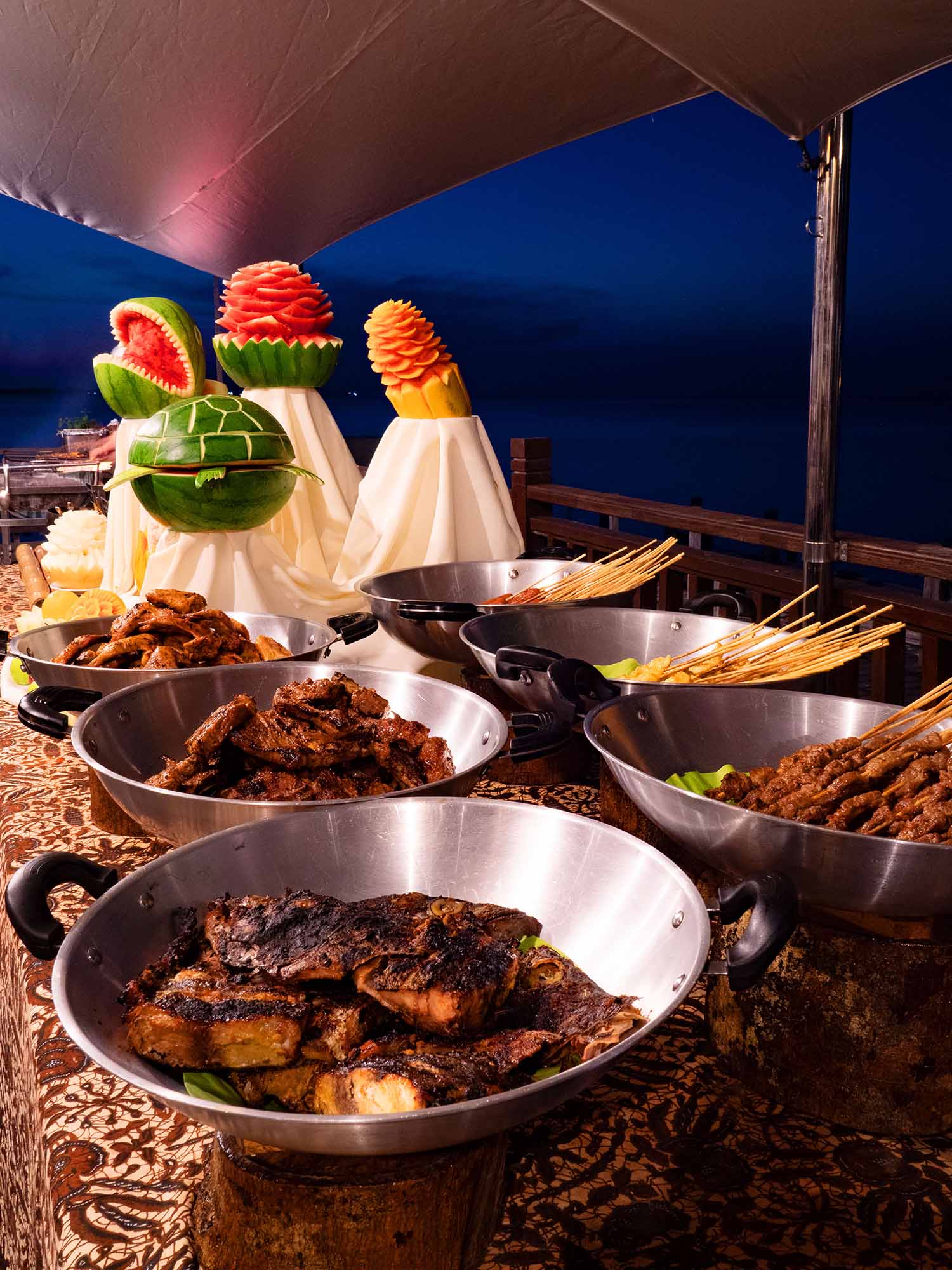 Simply ‘Enak’—literally means ‘tasty’ in Malaysian, serves different kind of menus to suit every needs and occasion. Each nights, Simply ‘Enak’ will serve different type of tantalizing dishes based on one specific theme; such as International Cuisine, Mediterranean Cuisine, to the vibrant ‘Malam Rampai’. Have a feast with the restaurant’s finest rendition of Malaysian staple dishes; Soup Tulang, Rendang, Nasi Lemak just to name a few; exotic Indian treat such as Chapatti and authentic Curry, to Western goodness such as variety of pastas and roasts. Almost all of our menus are made using fresh local herbs and spices, with several thoughtful fusion to maintain the taste authenticity. Visit the restaurant on Saturday and cherish your flavorsome weekend by the sea with a special BBQ night, serving grilled Ocean goodness, cooked live on spot. Dig in and have a feast of the tasty meat treat, accompanied with variety of different sauces to enhance the flavor. The restaurant venue also features an ample stage which occasionally used to host a cultural performance; traditional dance and musical show alike.