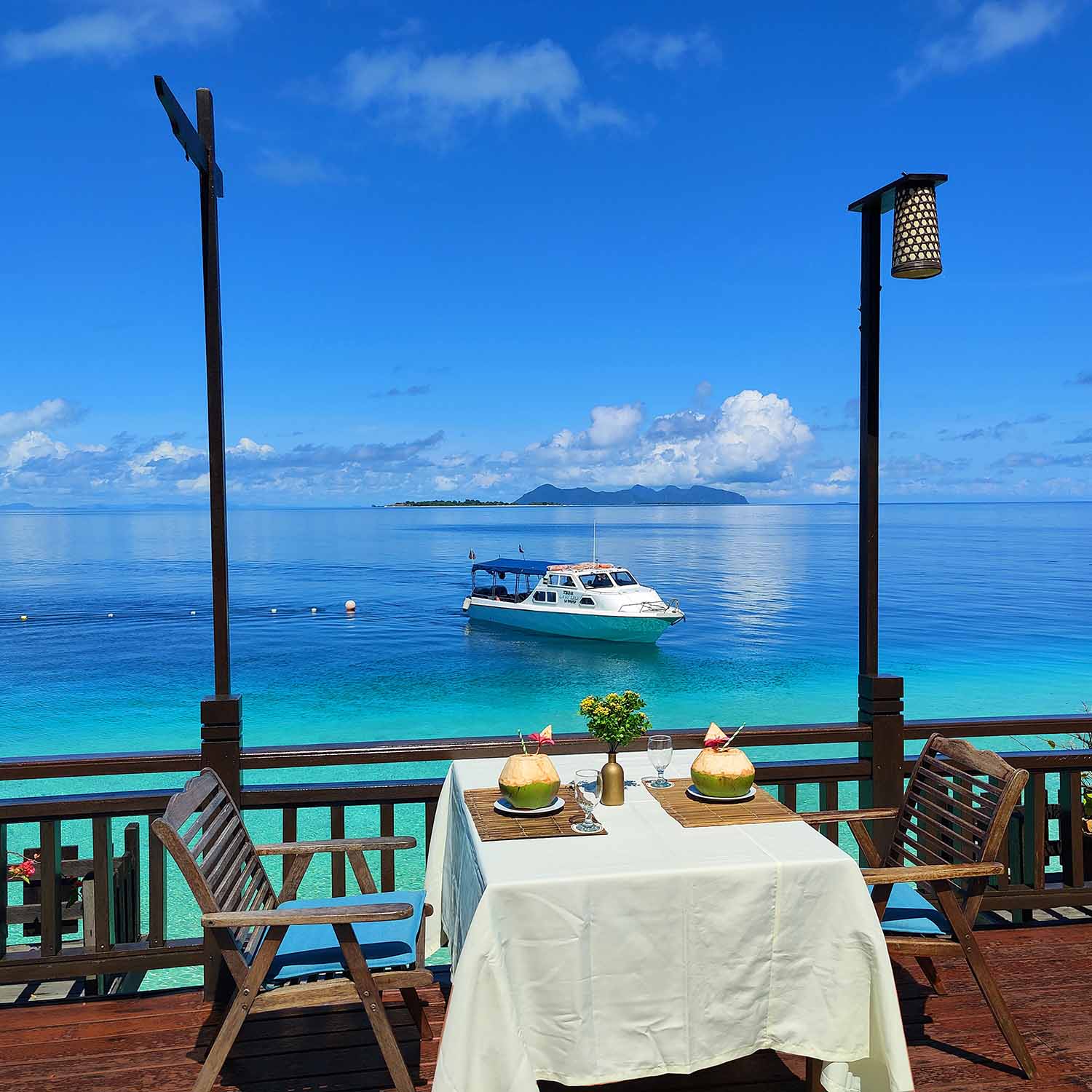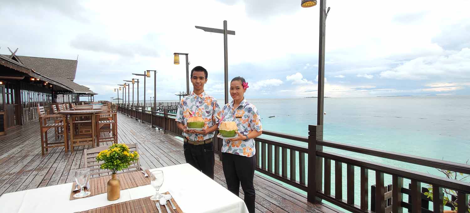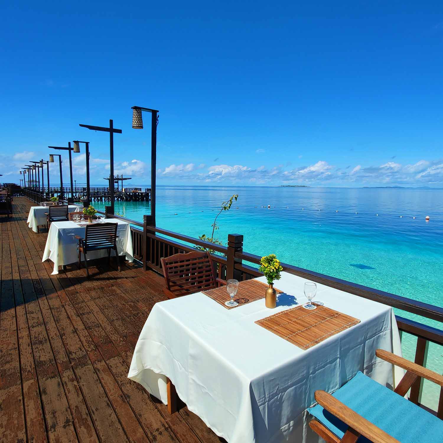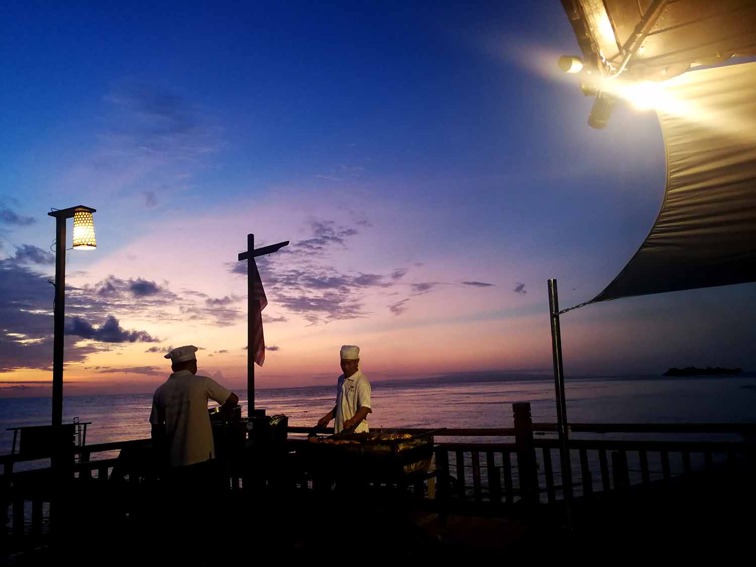 Come at dawn to gaze upon the panoramic sunset view and order some of the restaurant’s signature island cocktail, and as the night arrives, honeymooners seeking for intimate ambience may ask the staff to sit on the deck under the stars; a romantic corner to have a private dining moment of two, accompanied by nothing but gentle sea breeze and the soothing sound of undulating Ocean wave.